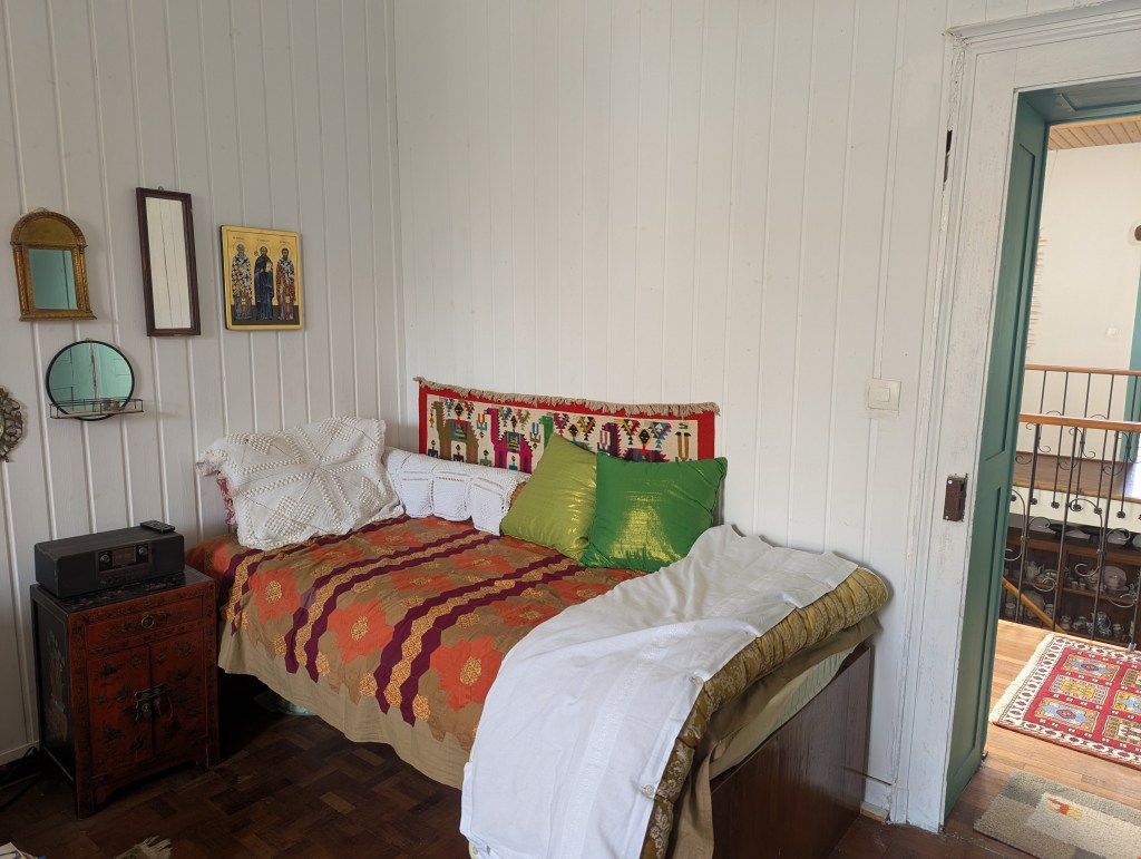 Das Pavillion, ein eigenes Häuschen mit Doppelbett, das Bad im Haupthaus.