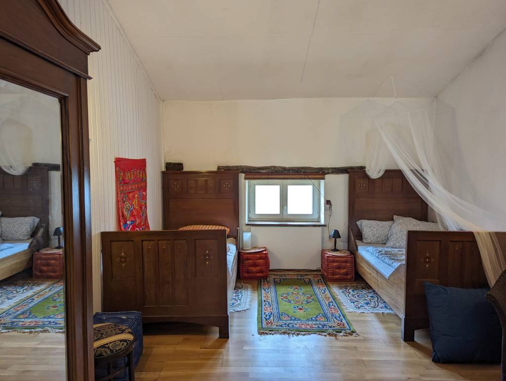 mit zwei Betten, das Bad auf der selben Etage.
